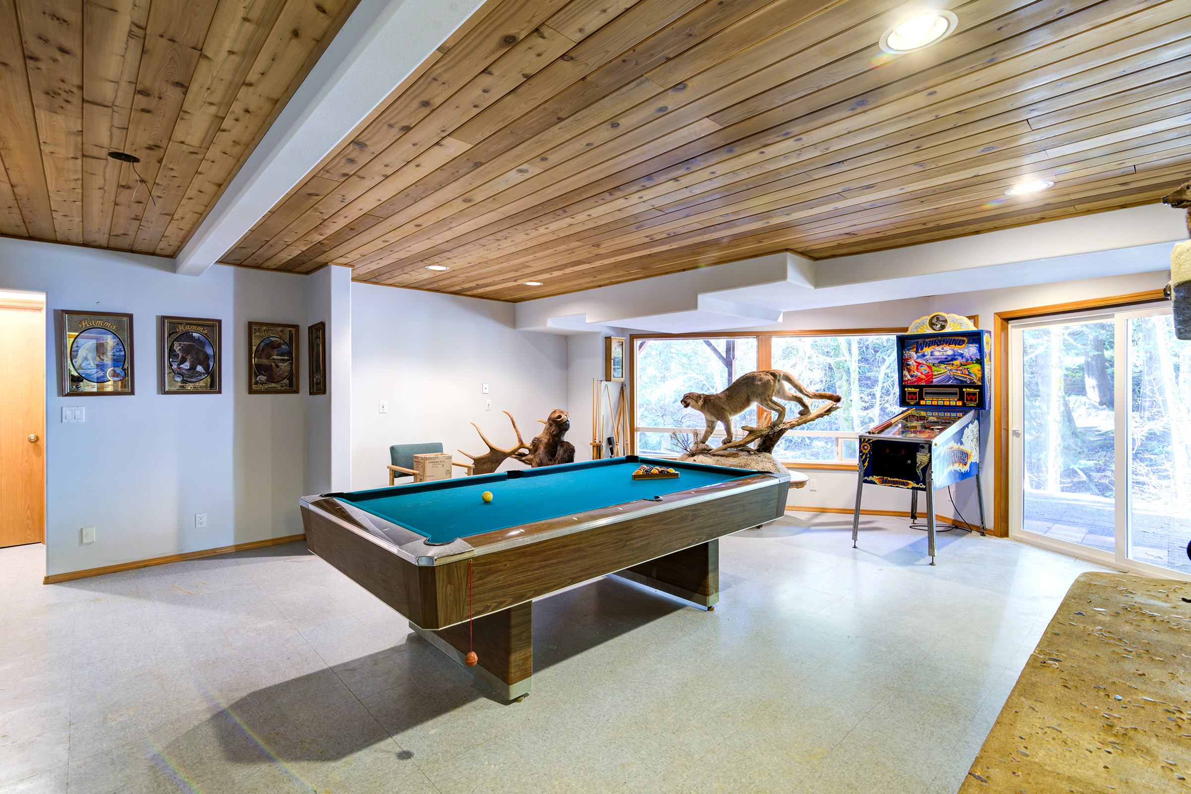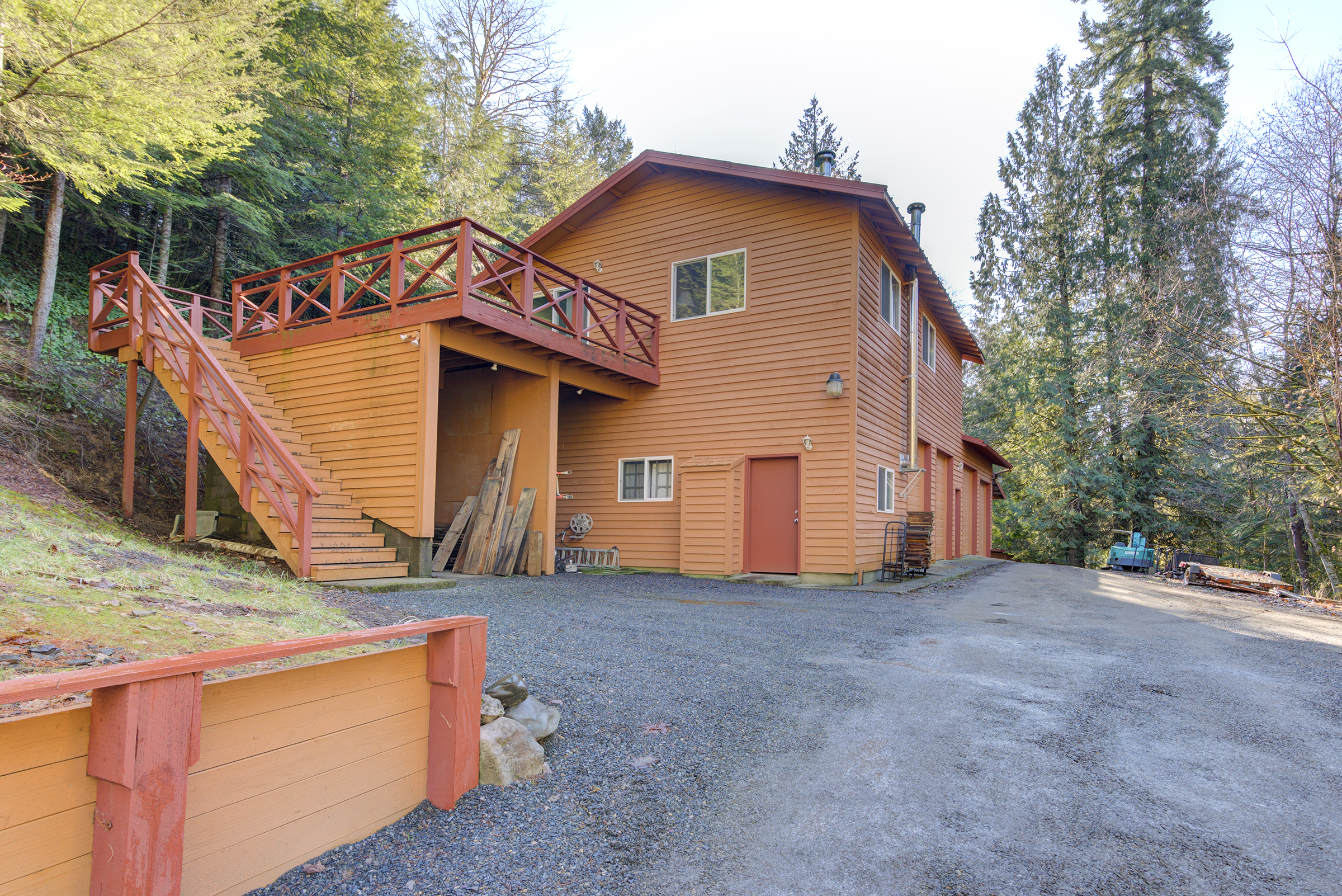 A fully furnished 720 sq.ft, apartment with 1 bedroom, full bath and open patio sits above a detached 4-car garage and covered storage area. A heated workshop area, with bathroom, has 220v with compressed air lines in each bay. Three additional separate buildings serve as a woodshed, pumphouse and greenhouse area with ample room for a garden.